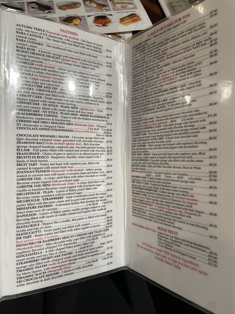 Introducing Veniero's, a historic Italian bakery in NYC's East Village. Known for its exquisite desserts and pastries, Veniero's offers a wide range of sweet treats, including the famous tiramisu and pistachio cannoli. Customers rave about the quality and flavors of the desserts, with favorites like the Oreo Cheesecake Bite and Joanne's Passion. The cozy cafe atmosphere, paired with a diverse menu of Italian baked goods and drinks, makes Veniero's a must-visit for dessert lovers. Whether you're looking for a quick sweet treat to go or a sit-down experience with friends, Veniero's has something for everyone. With a rich history spanning over 130 years and five generations of family ownership, Veniero's combines tradition with modern excellence in every bite. Don't miss out on experiencing the charm and delectable offerings at Veniero's.